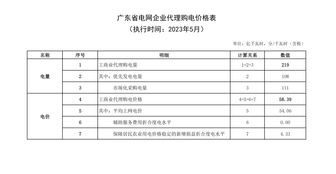广东电网有限责任公司东莞供电局2023年5月代理购电价格公告